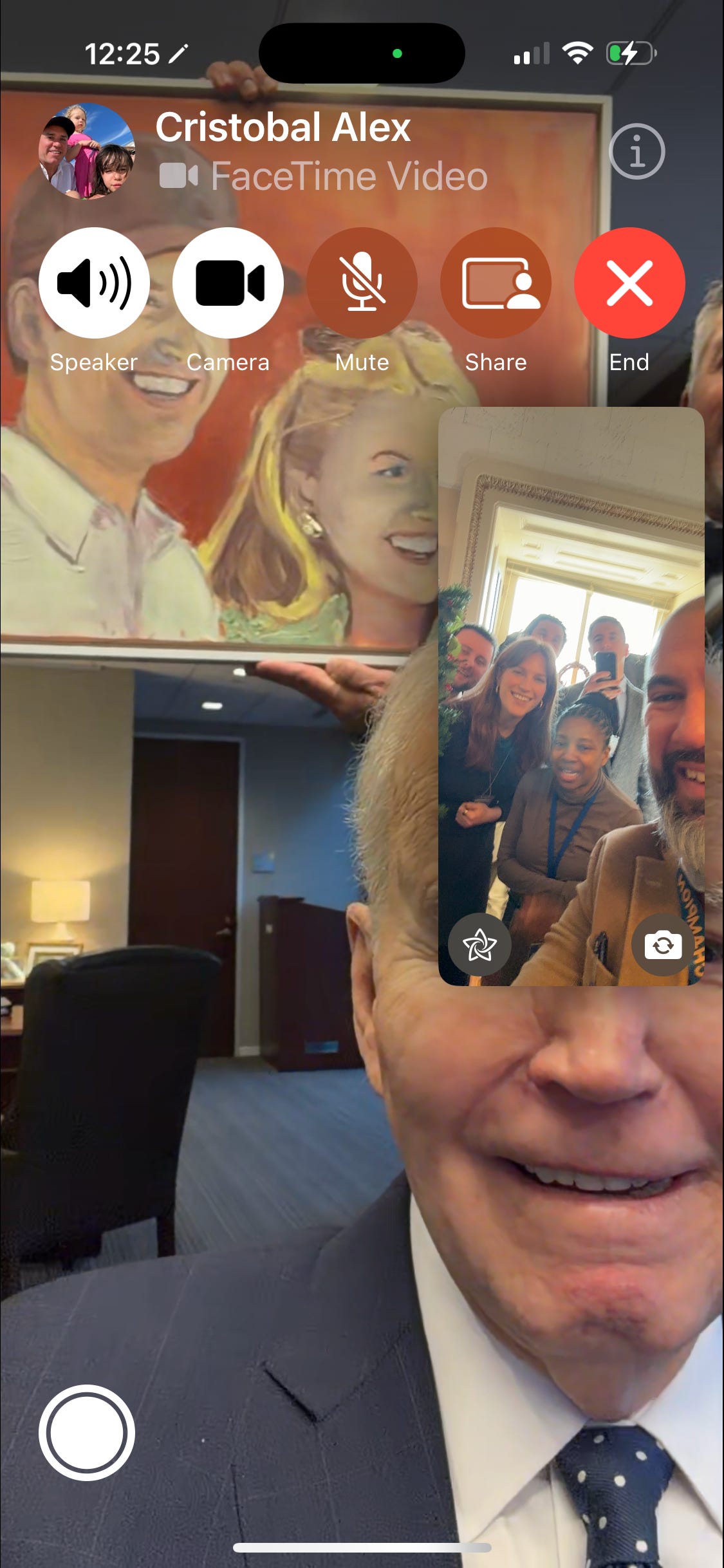 Next thing I know, Dr. Jill Biden’s face is on my phone, then the ex-president’s, and I’m apologizing for cursing and showing him around the Frederick Douglass Press Gallery while my colleagues try to file their stories. I showed him my portrait of Douglass hanging above the AP booth. He liked it. Invited me to his office in the new year.