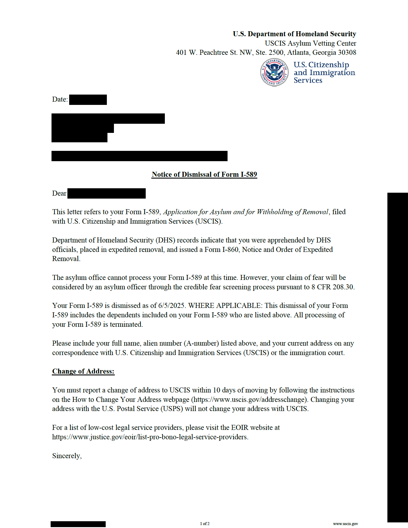 Previously, filing Form I-589, Application for Asylum and for Withholding of Removal, with USCIS was a recognized legal pathway for asylum seekers not in removal proceedings. Jones described this route as now resembling “a legal wall,” with applicants who complied with prior rules potentially facing mandatory detention and expedited removal proceedings.