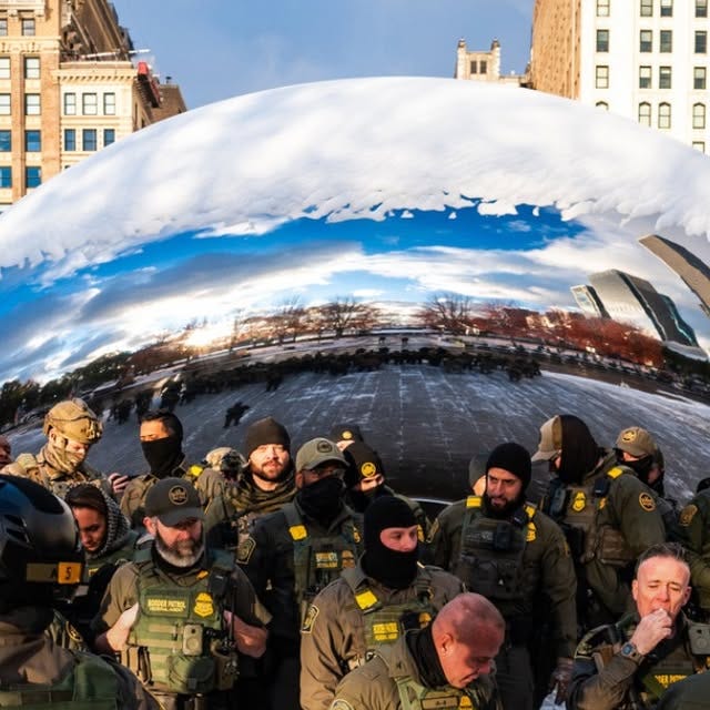 Early Monday morning, Border Patrol Chief Gregory Bovino led dozens of masked, armed agents to Millennium Park for a choreographed shoot with Department of Homeland Security photographers. Witnesses said the agents shouted “Little Village,” referencing a heavily Latino neighborhood frequently targeted by enforcement sweeps.