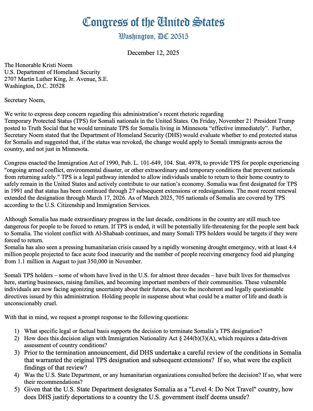 Omar’s not hiding. She’s on CBS saying: “Your message of bigotry is not working. Your intimidations are not going to work on the Somali community who have survived so much.” She’s in committee hearings grilling diplomats. She’s writing letters to DHS. She’s doing her job.