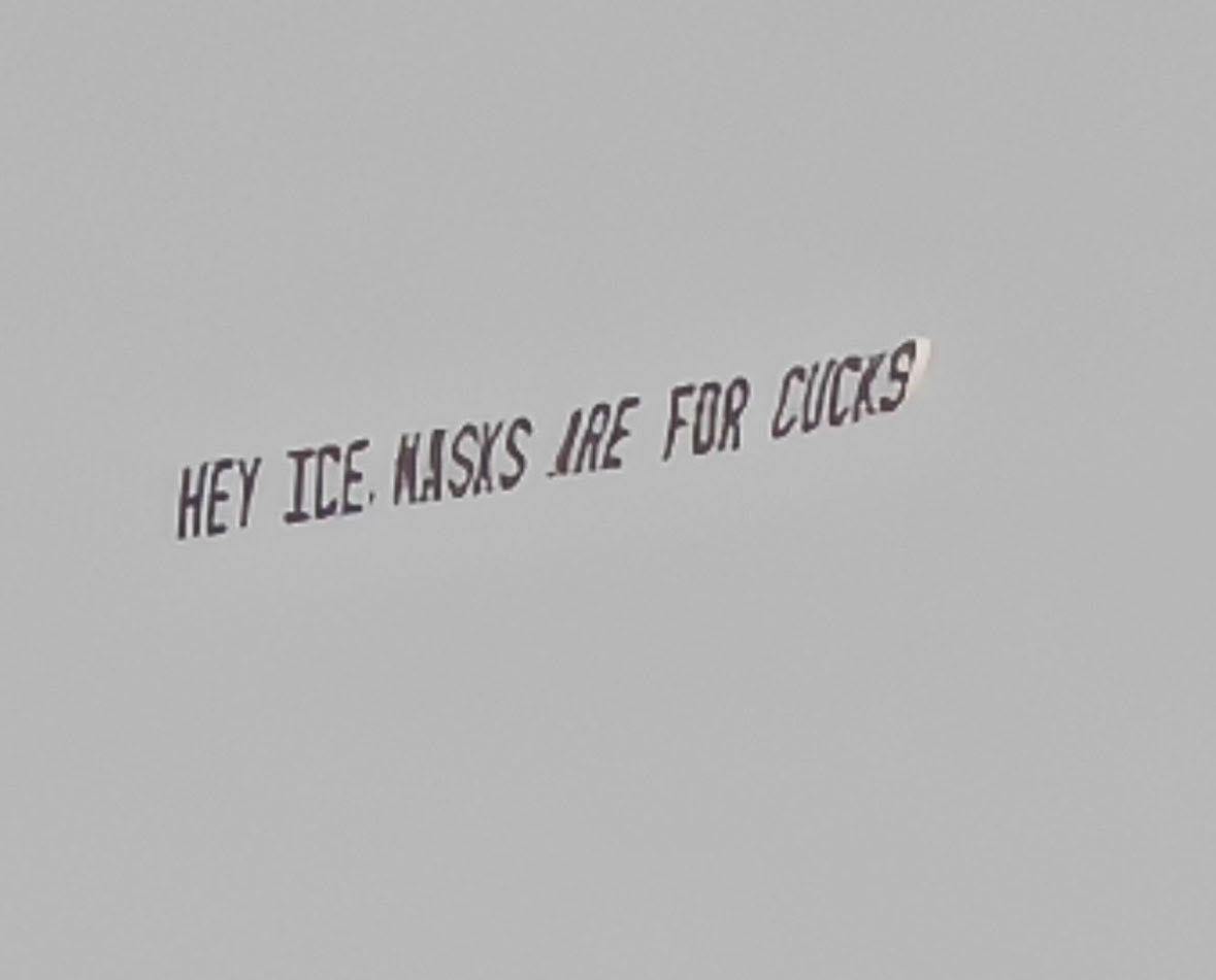 A plane dragged a message across the night sky: “HEY ICE, MASKS ARE FOR CUCKS.”