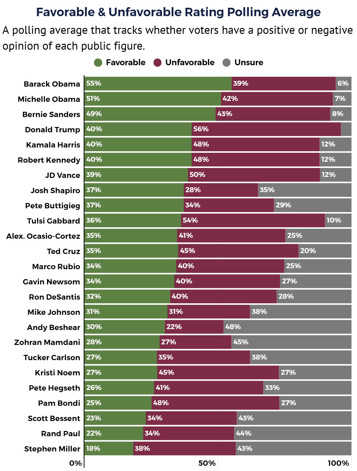Among voters who have formed an opinion about him — and 57% of Americans have — 68% view him unfavorably. That is a net favorability of negative 36 points, the worst mark on a list that includes Donald Trump, JD Vance, Pete Hegseth, and Pam Bondi.